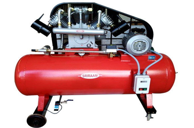 At Sriram Compressors, we manufacture durable and efficient two-stage high pressure air compressors in Coimbatore, ideal for applications that require consistent high-pressure output. These compressors are built for industries that demand strong, continuous airflow — such as PET bottling, gas filling, and heavy-duty pneumatic systems.